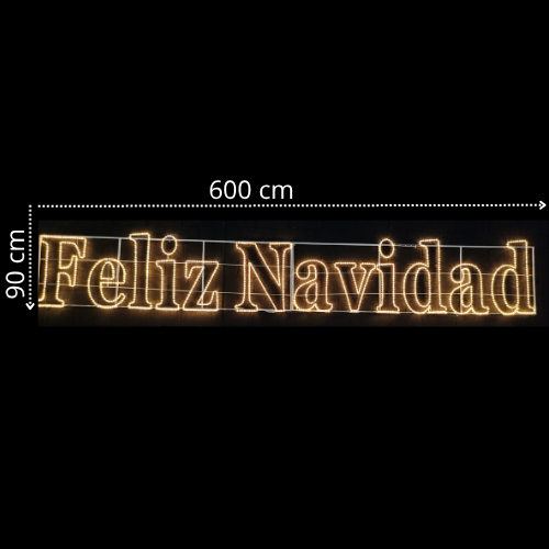 Letrero Feliz Navidad LED dorado, 600×h 90 cm