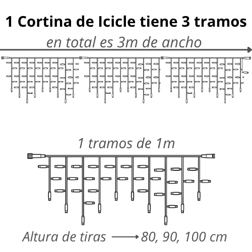 Esta cortina icicle LED es perfecta para decorar calles, fachadas, entradas o escaparates, simulando una caída de nieve luminosa. Su luz cálida o fría crea un ambiente festivo, ideal para Navidad, bodas, restaurantes o espacios públicos.