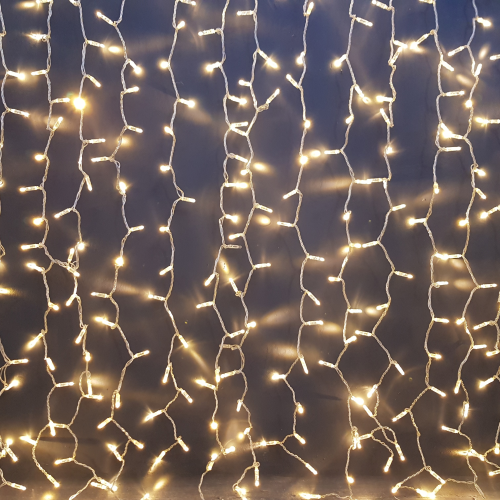 Cortina de Luces Led de color Blanco cálido, medidas 2mts de ancho x 1.5/3/6/9 mts alto. Está incluida la alimentación es imprescindible su compra para el funcionamiento.