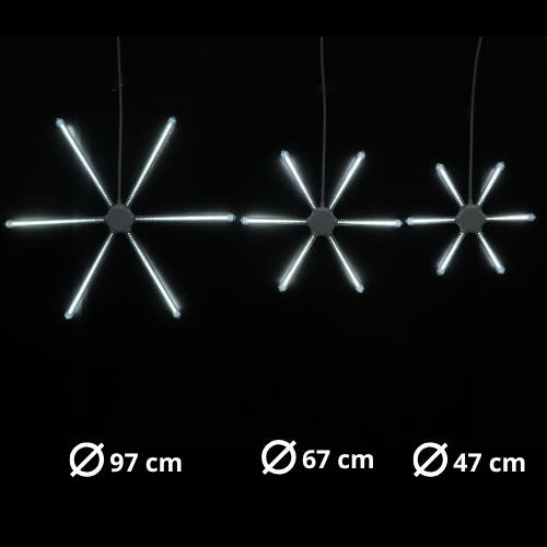 Estrella LED meteorito blanco o RGB, 6 tubos transparentes Ø2 cm, disponible en 47 cm, 67 cm o 97 cm