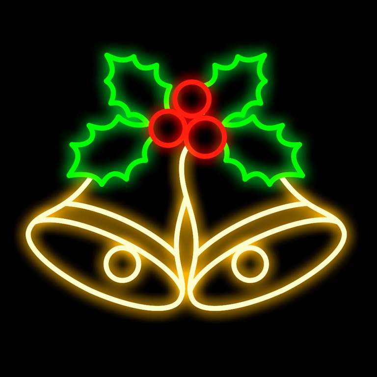 Campanas LED de muérdago LED exterior, 70×56 cm – figura navideña, adorno luminoso profesional