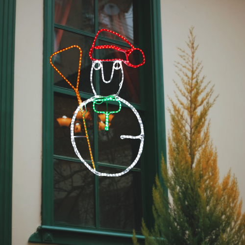 Con unas dimensiones de 1,33 × 0,80 m, el Muñeco de Nieve luminoso LED es perfecto para decorar accesos a comercios, hoteles, restaurantes o el hogar. Su presencia simpática y luminosa convierte cualquier entorno en un lugar acogedor y mágico durante las fiestas. Este modelo incluye cable de alimentación 230V y cuenta con protección IP44, lo que lo hace apto para soportar la intemperie. Su instalación es sencilla y su estructura ligera permite colgarlo fácilmente en paredes o estructuras verticales.