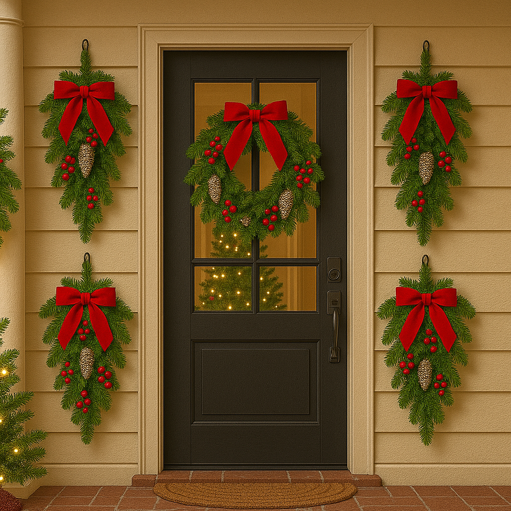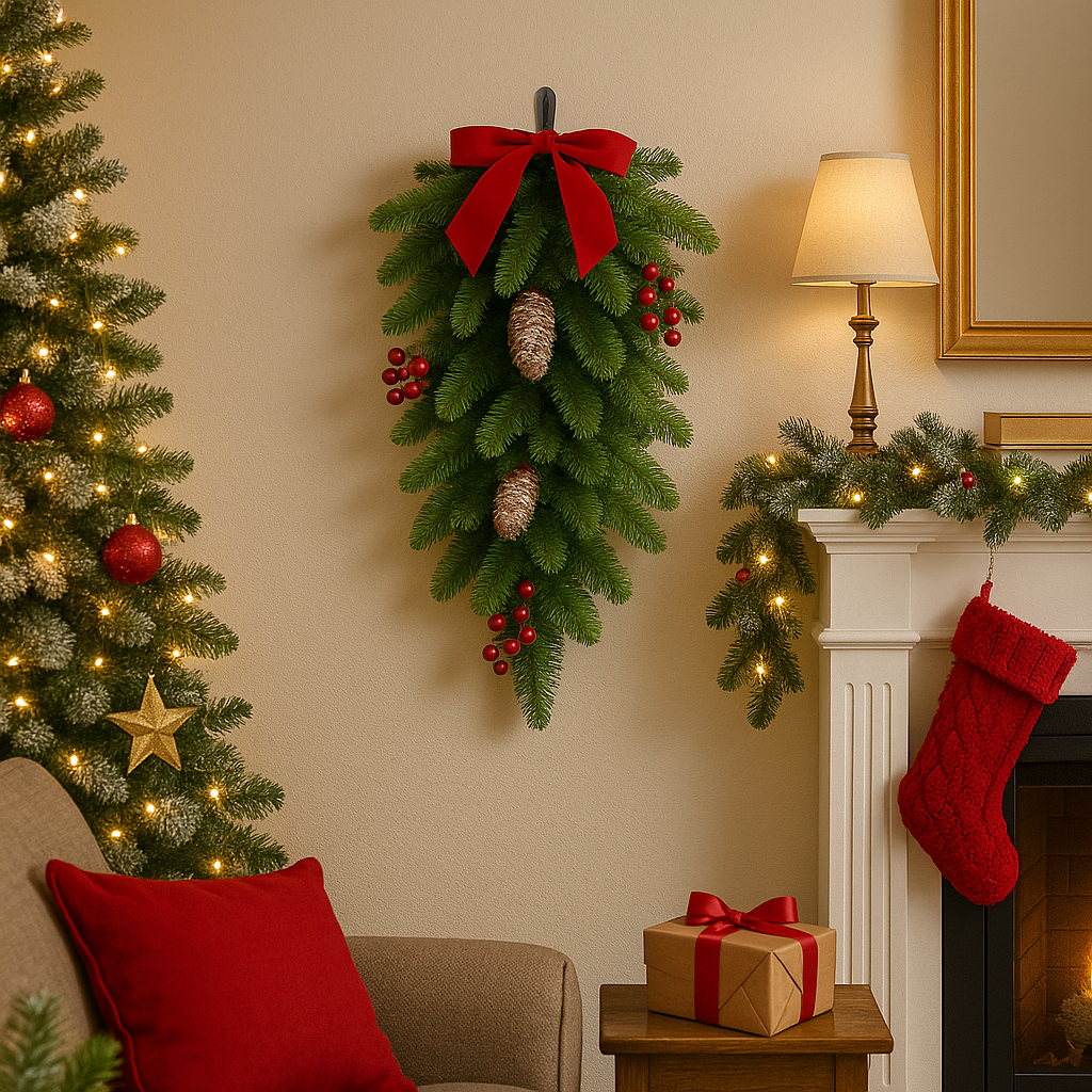 Perfecta para quienes desean crear un ambiente navideño memorable, esta guirnalda aporta elegancia, textura y calidez a cualquier entorno. Su diseño colgante permite decorar puertas, paredes o columnas de forma creativa y original, transmitiendo un auténtico espíritu navideño.
