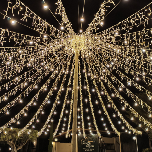 Estas guirnaldas son perfectas para decorar fachadas de hoteles, restaurantes, bares, tiendas, jardines y terrazas, así como para eventos especiales como bodas, ferias, fiestas o celebraciones navideñas.