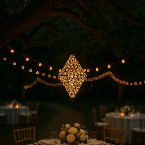 Nuestras lámparas LED colgantes te permiten transformar la atmósfera de tu boda o evento especial con solo un toque. Logrando un ambiente único y memorable. Crea un ambiente acogedor y romántico, ideal para bodas íntimas o eventos nocturnos donde se desea una iluminación suave que resalte la calidez y la elegancia del entorno.