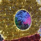 Decoración con manguera de hilo luminoso, tapiz y guirnalda de led